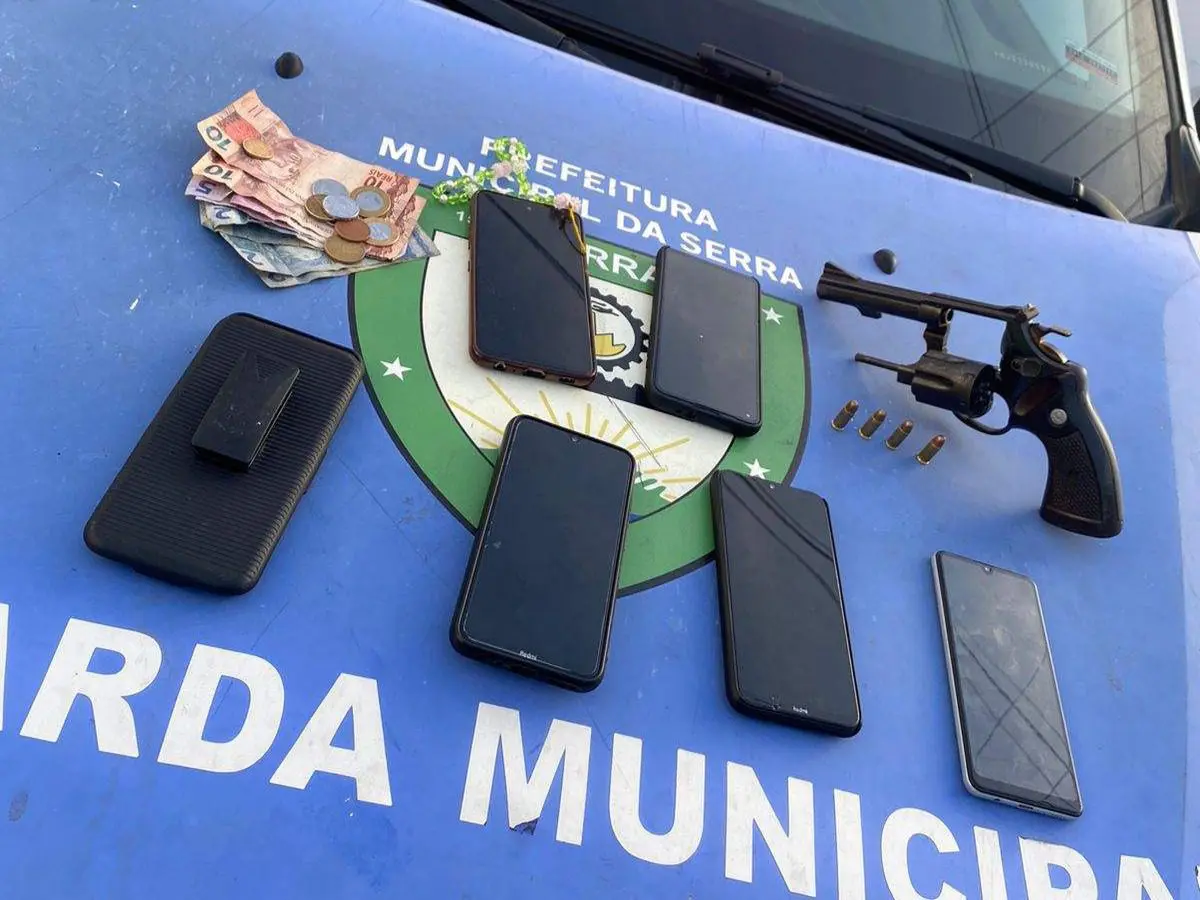 Durante a abordagem foi encontrado, uma arma de fogo, contendo quatro munições, seis aparelhos celulares e também uma quantia em dinheiro. Os três suspeitos foram detidos em flagrante e encaminhados para a 3ª Delegacia Regional da Serra, em Laranjeiras.