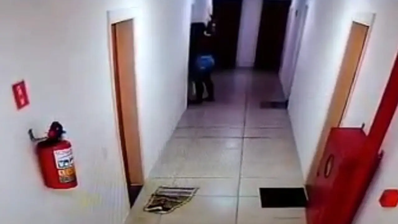 Vídeo abaixo das imagens registradas pela câmera localizada no corredor do prédio