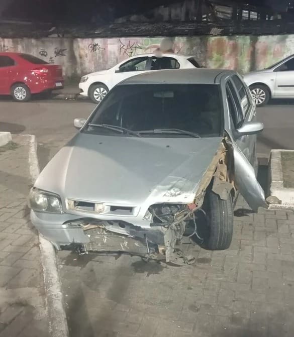 Imagens enviadas por leitores mostram o carro com a frente destruída e a traseira com ao menos seis perfurações de bala na região do porta-malas do veículo.