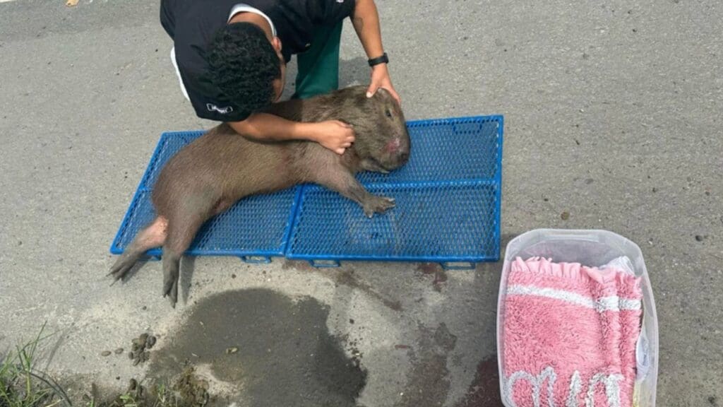 Na última sexta-feira (18), uma capivara foi atropelada na Rodovia do Contorno da BR-101, KM 273, próximo do bairro Andre Carloni, no município de Serra. O acidente, que ocorreu durante o feriado, mobilizou equipes da Ecovias 101 e da clínica veterinária Sauvage, especializada no atendimento à fauna silvestre.