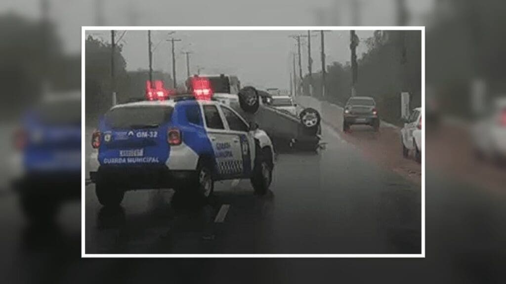 De acordo com as informações, por volta das 7:30h, um motorista perdeu o controle do veículo após passar por poça de água da chuva acumulado na pista, acabou batendo no canteiro central da via e capotando.