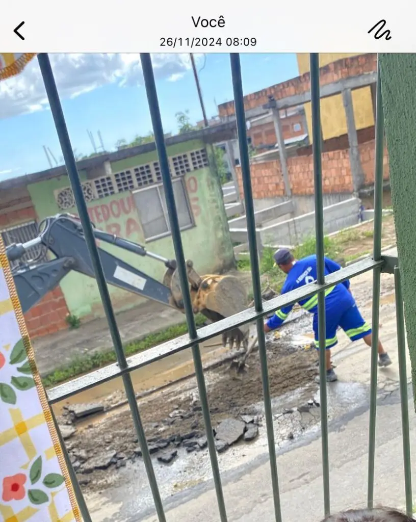 O morador compartilhou com a nossa reportagem uma imagem de seu arquivo pessoal, que mostra os trabalhadores realizando o serviço em sua rua no dia 26 de novembro. Com o tempo, o material cedeu e formou um buraco, que provocou o acidente da última quarta-feira.