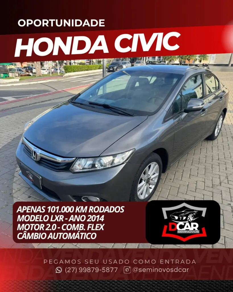 - Honda Civic 2.0 – Elegante e potente, o Honda Civic 2.0 une design esportivo, tecnologia avançada e dirigibilidade refinada para quem busca emoção e conforto ao volante.