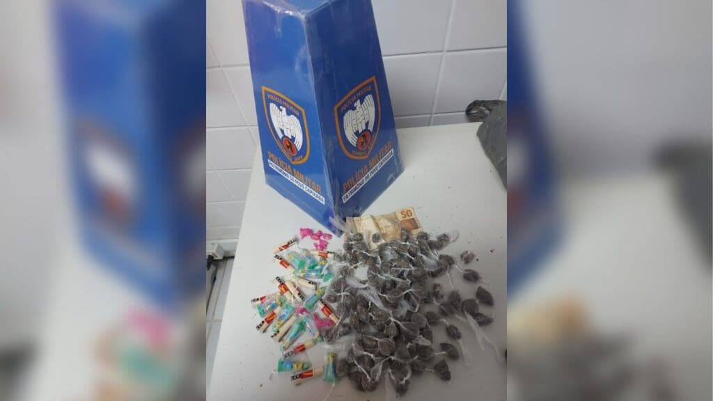 Em outro cômodo do estabelecimento, os policiais encontraram dentro de um engradado de cerveja, um sacolé contendo mais 10 pinos de substância similar a cocaína. Dessa maneira, a Polícia Militar apreendeu todo o material ilícito e deu voz de prisão ao traficante e a proprietária do local, que foram conduzidos para a 3° Delegacia Regional da Serra.