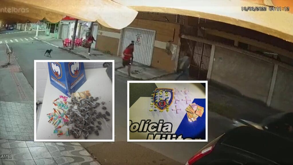 Assim que os policiais se aproximaram do local para efetuarem a prisão do traficante identificado como Jambson Conceição Santos Lima, a proprietária da distribuidora de bebidas alertou o vapor para a chegada dos militares. No instante em que recebeu o aviso, o criminoso ficou em choque soltando o dinheiro e uma sacola com nove pinos de maconha.