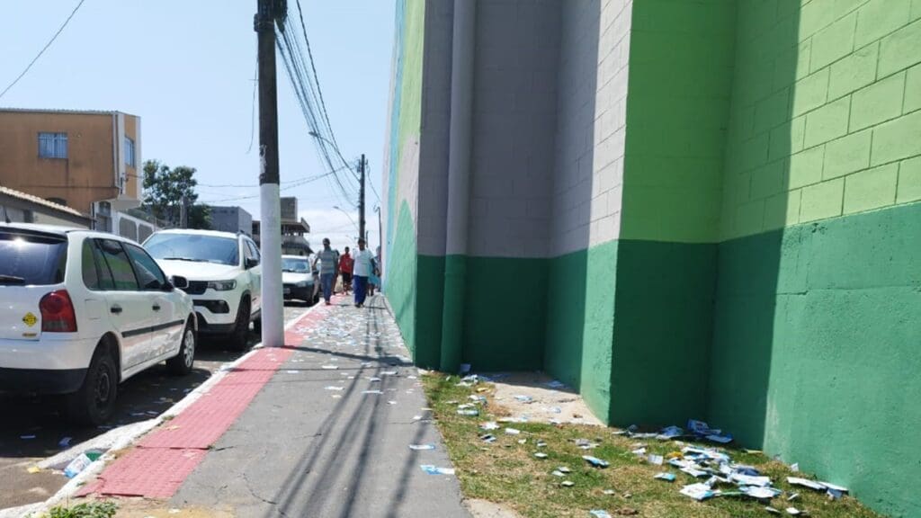 A viatura da Polícia Civil estava em diligência pela avenida Guarapari por volta de 1h da madrugada, em frente à escola EEEFM- Maria Penedo, que funciona como colégio eleitoral. Quando veículo modelo Hilux branca, com cinco ocupantes, se aproximou da região e despejou diversos panfletos e santinhos, o que configura uma prática de propaganda irregular.