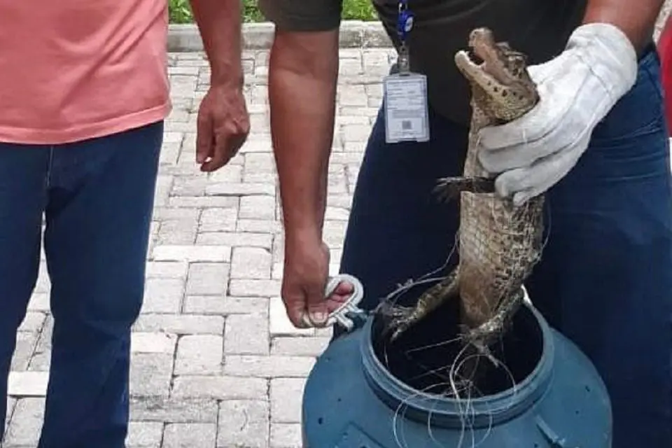 A Fiscalização Ambiental da Serra resgatou, nessa segunda-feira (08), no Horto Municipal, um jacaré que estava preso em uma linha de náilon geralmente utilizada para pesca.