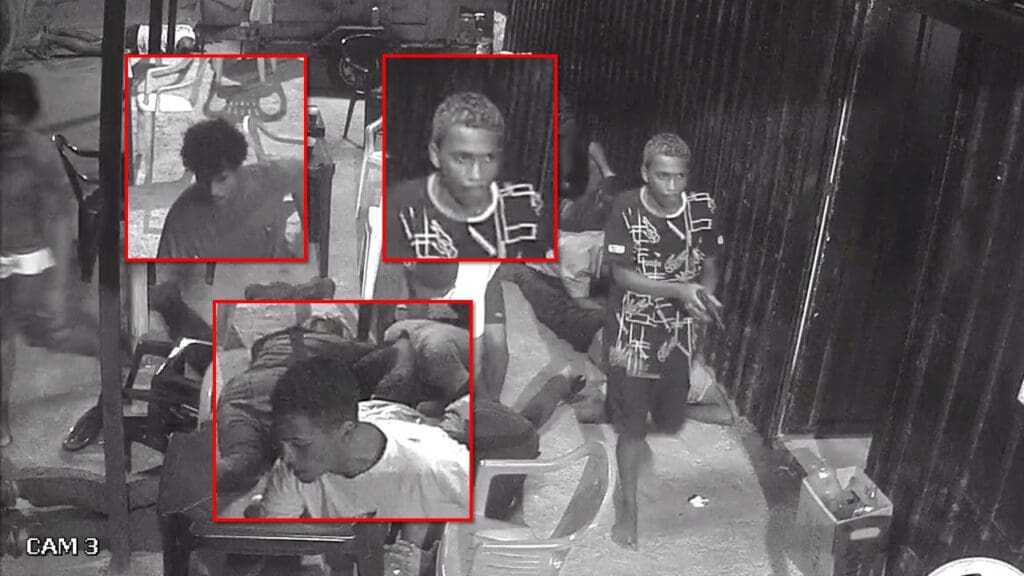 De acordo com uma das vítimas que conversou com a reportagem, quatro assaltantes desembarcaram de um veículo modelo GM-Corsa sedan, um quinto criminoso ficou de piloto de fuga dentro do carro, enquanto os outros já estavam anunciando o arrastão, ordenando que todas as vítimas se deitassem no chão, conforme aparece nas imagens compartilhadas intensamente.