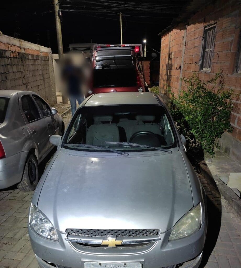 Durante buscas realizadas no bairro, os militares encontraram o veículo, na rua Girassol II, com vidro dianteiro direito quebrado e com as portas trancadas, ao puxar a placa do veículo no sistema constou restrição por furto/roubo.