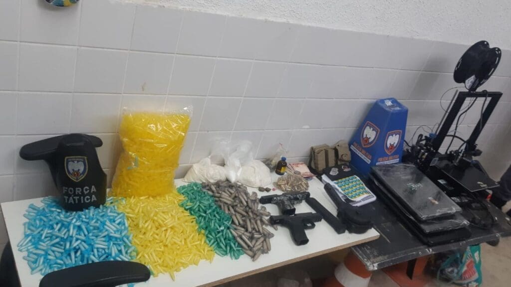 A casa estava abarrotada de entorpecentes, armas e até uma impressora 3D, que segundo os criminosos, estavam tentando imprimir peças para armas de fogo. Confira a lista do material apreendido na operação: