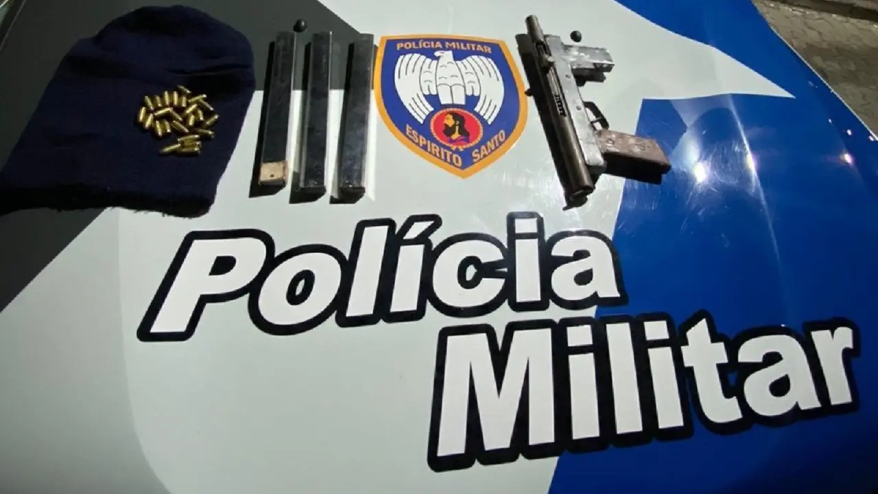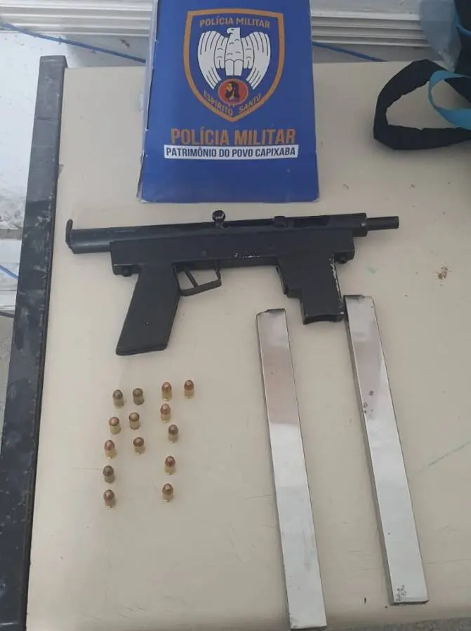 Já na madrugada de sábado (22), uma viatura foi parada por um cidadão bastante assustado, dizendo ter visto um jovem com uma arma longa em mãos em plena via pública. Os policiais iniciaram a busca e encontraram o rapaz, que foi detido. Ele portava uma submetralhadora, dois carregadores e um total de 14 munições calibre 380.
