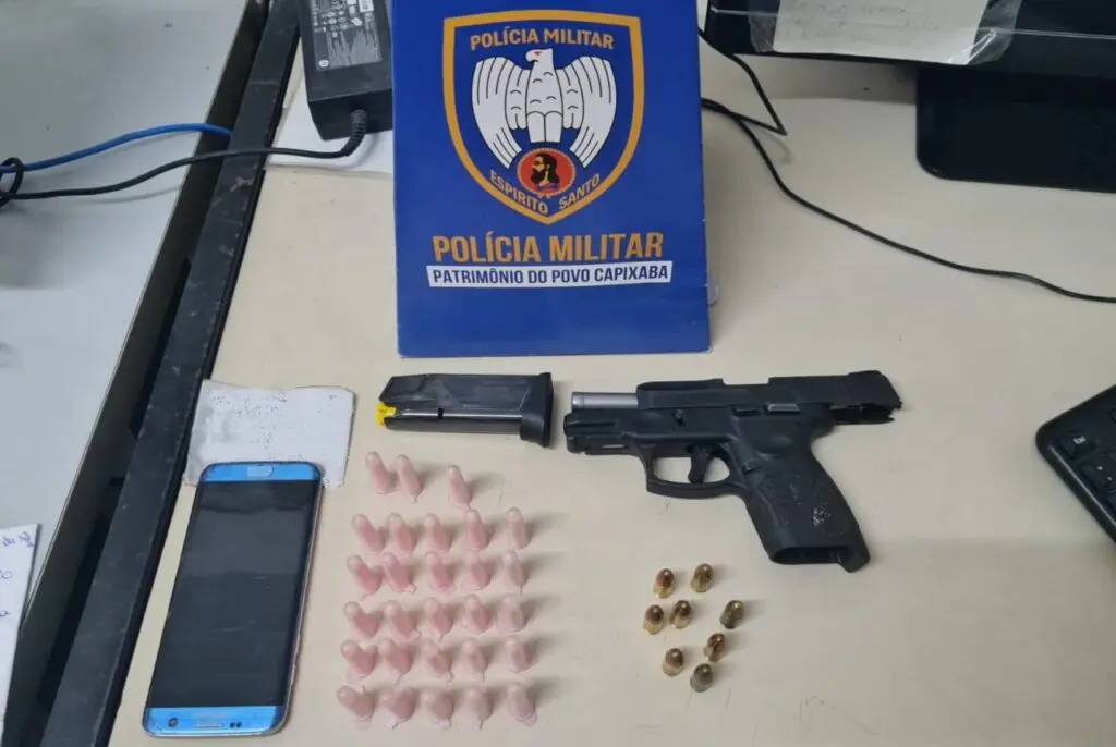 Na sexta-feira (20), militares obtiveram êxito em apreender uma pistola calibre 9mm com 08 munições e 28 pinos de cocaína. O material foi encontrado e apreendido após uma abordagem no bairro Jardim Bela Vista.