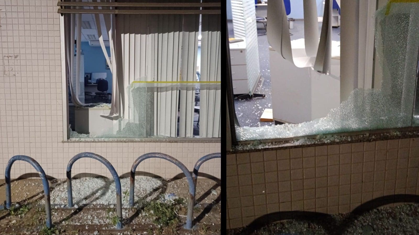 Ao chegarem no local, os militares fizeram contato com o vigilante de bairro, que relatou à equipe que estava passando pela região quando avistou dois indivíduos na parte lateral do banco, próximo à janela de vidro, que havia sido quebrada pelos criminosos.