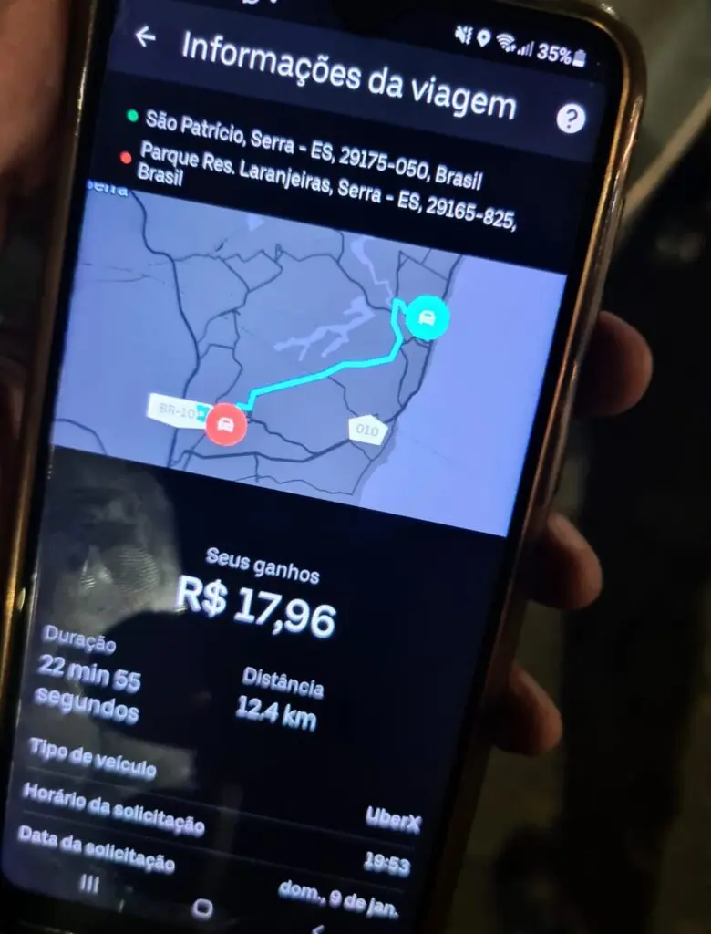 Neste último domingo (09), um motorista de App aceitou corrida de São Patrício, na região de Jacaraípe, com destino ao bairro Parque Residencial Laranjeiras.