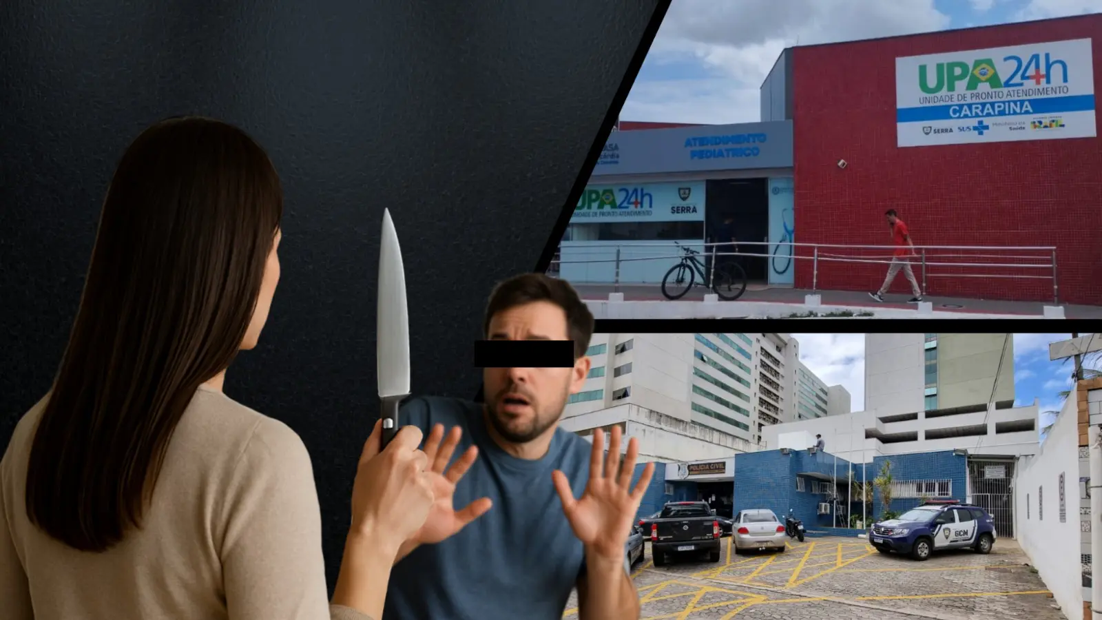 A equipe médica da unidade acionou a PM após o homem chegar ao local com um corte de faca no braço e apresentar dificuldade para explicar o que havia ocorrido. Ainda segundo os profissionais, o comportamento dele chamou atenção, e a polícia foi acionada. Testemunhas relataram que o suspeito entrou desnorteado na unidade e segurava uma faca suja de sangue. Antes da chegada dos militares, ele ainda tentou esconder o objeto no banheiro, mas foi visto pelos funcionários. A faca foi localizada pelos policiais militares no mesmo local.