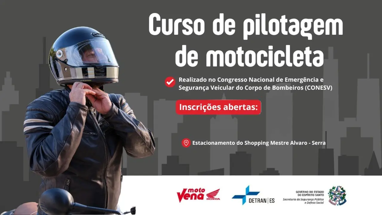O Departamento Estadual de Trânsito do Espírito Santo (DETRAN-ES) está com inscrições abertas para o curso gratuito de pilotagem de motocicletas. Os interessados podem se inscrever até o próximo domingo (12) pelo site oficial do DETRAN-ES.