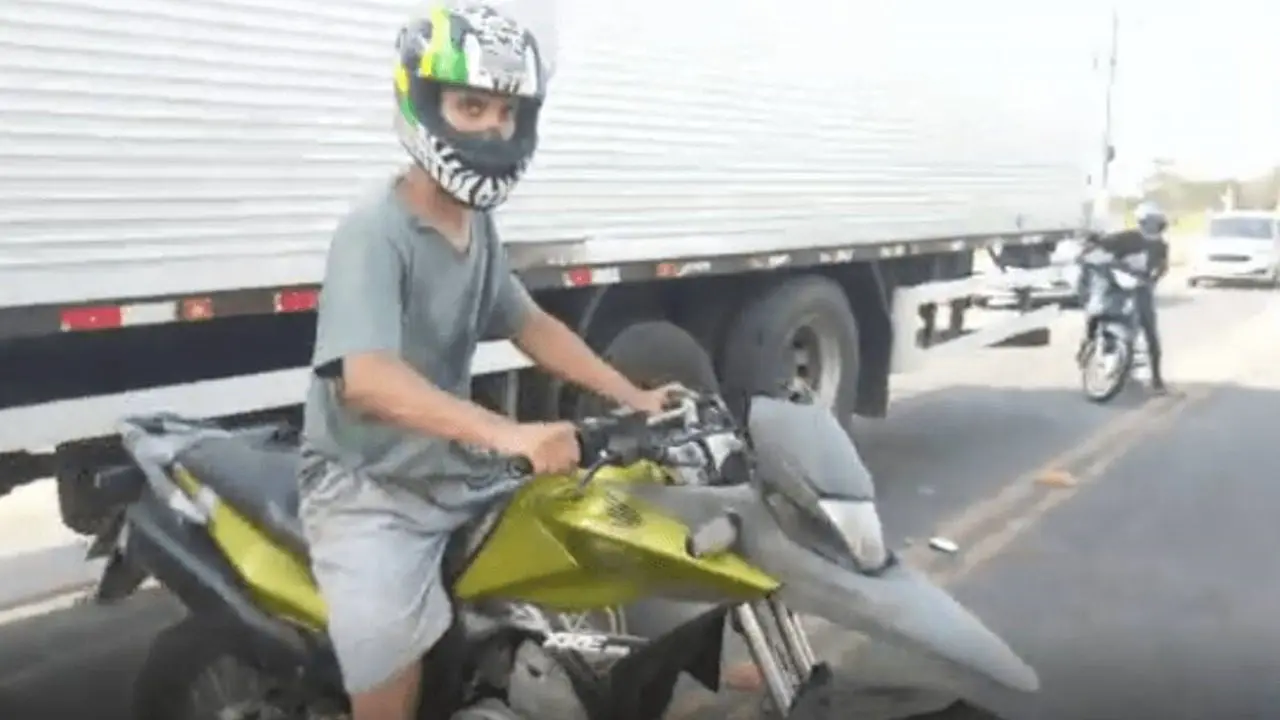 Porém na Av. Civit, próximo do Posto BKR, no cruzamento com a BR-101, o ladrão de moto invadiu a contramão e bateu em um caminhão, o motorista do caminhão filmou o momento que o criminoso liga a moto e foge rapidamente do local do acidente.