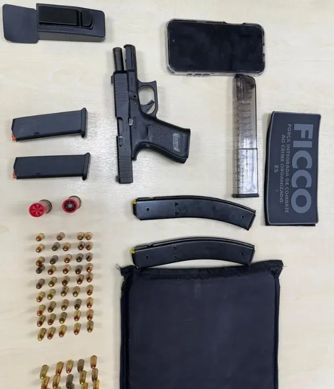 Além do dinheiro, foram apreendidos dois veículos de alto valor, uma pistola Glock calibre 9mm, três carregadores de pistola, dois carregadores de carabina 9mm e diversas munições.