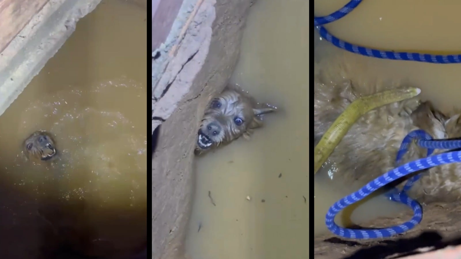 “O resgate levou cerca de dois minutos. O poço não é comum: a boca é estreita na parte de cima, mas mais larga embaixo. Por isso não dava para laçar o cachorro pelo pescoço, porque poderia machucá-lo.”