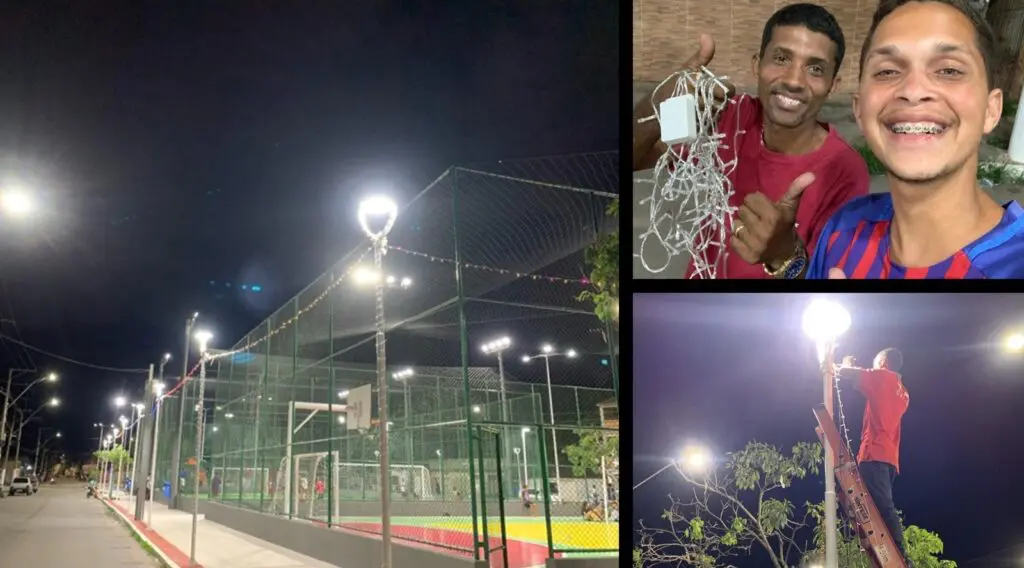 Nas imagens e fotos que a nossa reportagem recebeu de Vilmar Jr, é possível ver que a praça ganhou luzes de Natal em todo o se contorno, dando o clima natalino ao bairro. Vilmar conta que a iniciativa veio de um amigo na comunidade, e que ele prontamente topou participar e saiu em busca de recursos para viabilizar esses enfeites.