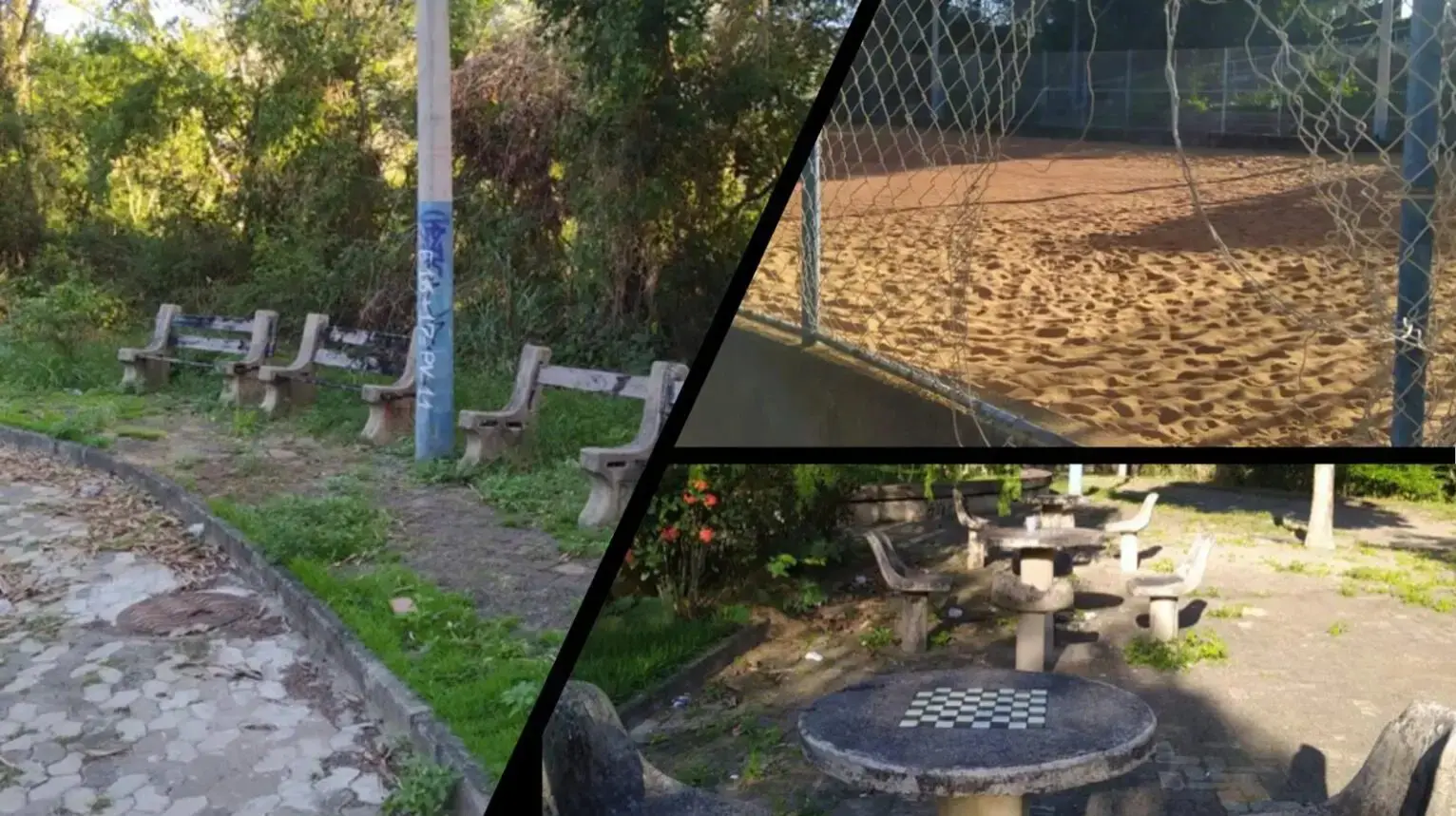 A reportagem teve acesso a algumas imagens que mostravam bancos de concreto quebrados, alambrado rasgado, grama e campos destruídos, mato alto e outros problemas que impedem qualquer tipo de convivência entre os moradores no local.