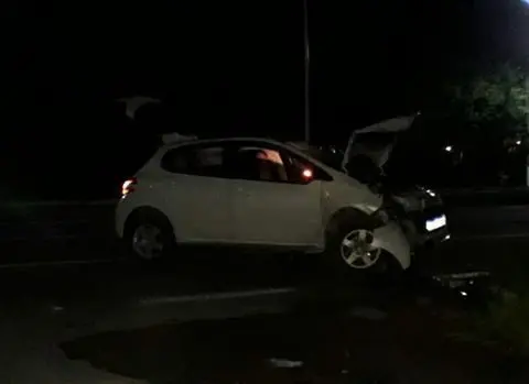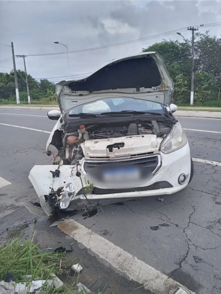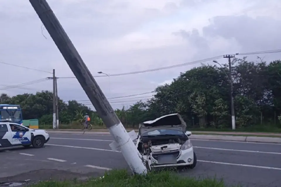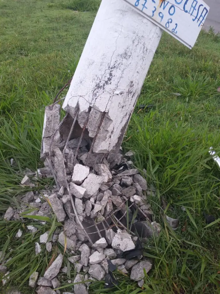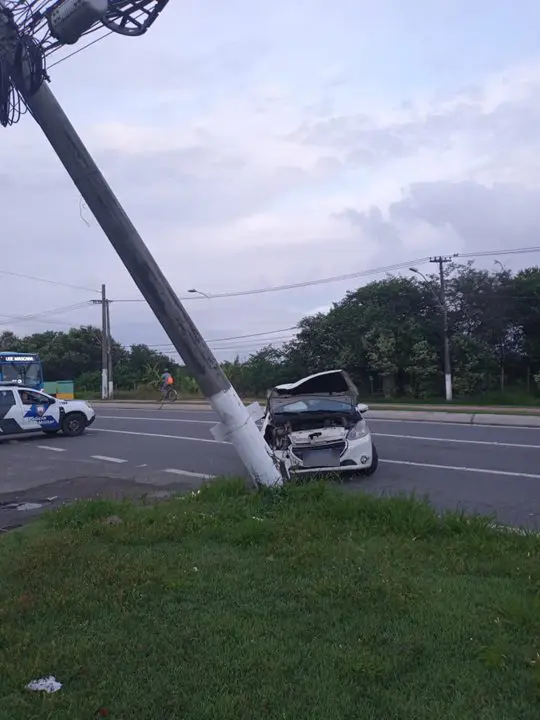A violência do impacto derrubou o poste, possivelmente o motorista estava em alta velocidade. Nas fotos abaixo, é possível notar que o airbag do veículo foi acionado.