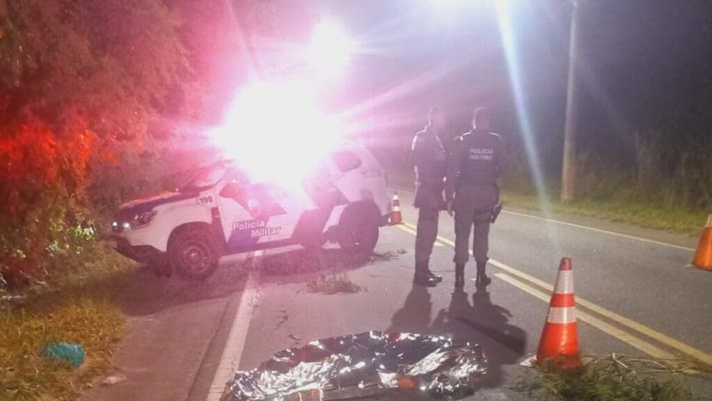 No local, a equipe encontrou a vítima em óbito. Próximo ao indivíduo foi localizada uma placa e até o encerramento da ocorrência, o condutor não foi encontrado. A Polícia Civil foi acionada.