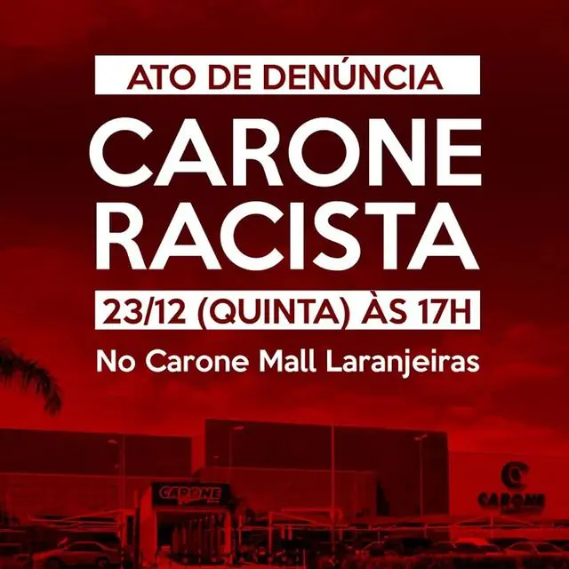 O racismo é institucionalizado, e o Carone em sua justificativa, tenta terceirizar a responsabilidade diante do crime de tortura empregado pelos seus funcionários e a mando da empresa. O que podemos chamar de tratamento racista padrão. Vários são os crimes ali observados, os seguranças não podem fazer essa abordagem, se havia suspeita de roubo que acionassem a polícia, mas julgaram, condenaram e aplicaram castigo e tortura, pois não reconhecem a humanidade daquele homem negro. Boicote o Carone Racista! Traga sua revolta, bandeiras e instrumentos musicais. Racistas Não Passarão