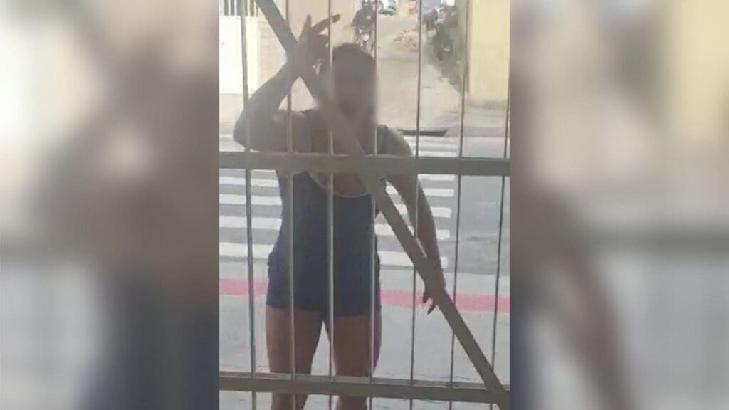 A mulher chega a chutar o portão e começa a discutir com outra mulher que gravava o vídeo. Ambas começam a discutir e uma sugerir à outra que a polícia fosse acionada, “chama a polícia!”.