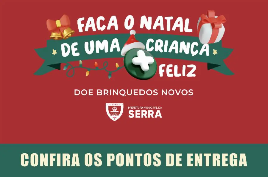 A ação consiste na arrecadação de brinquedos novos e embalados, que serão entregues às crianças do município durante a realização da última edição de 2022 do Serra + Cidadã, nos dias 16 e 17 de dezembro, no Pavilhão de Carapina, em Carapina.