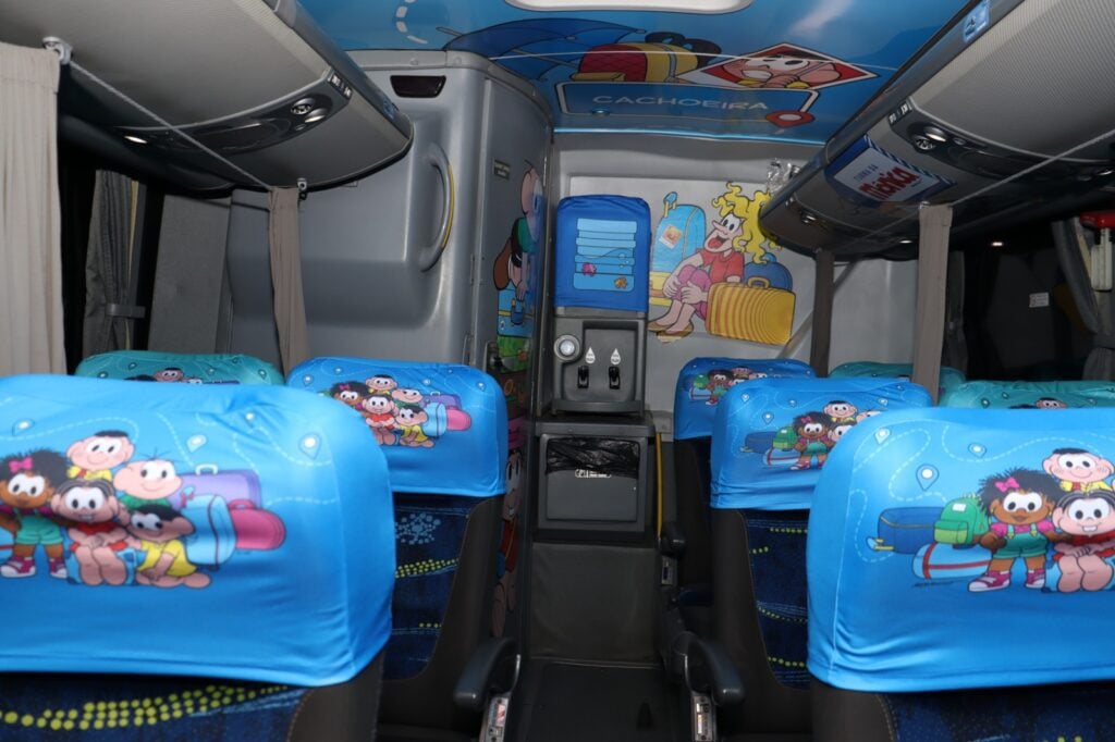 Além de entrar no ônibus decorado com os personagens da turma — como Cebolinha, Magali, Cascão e Mônica —, as crianças poderão participar de diversas atividades: