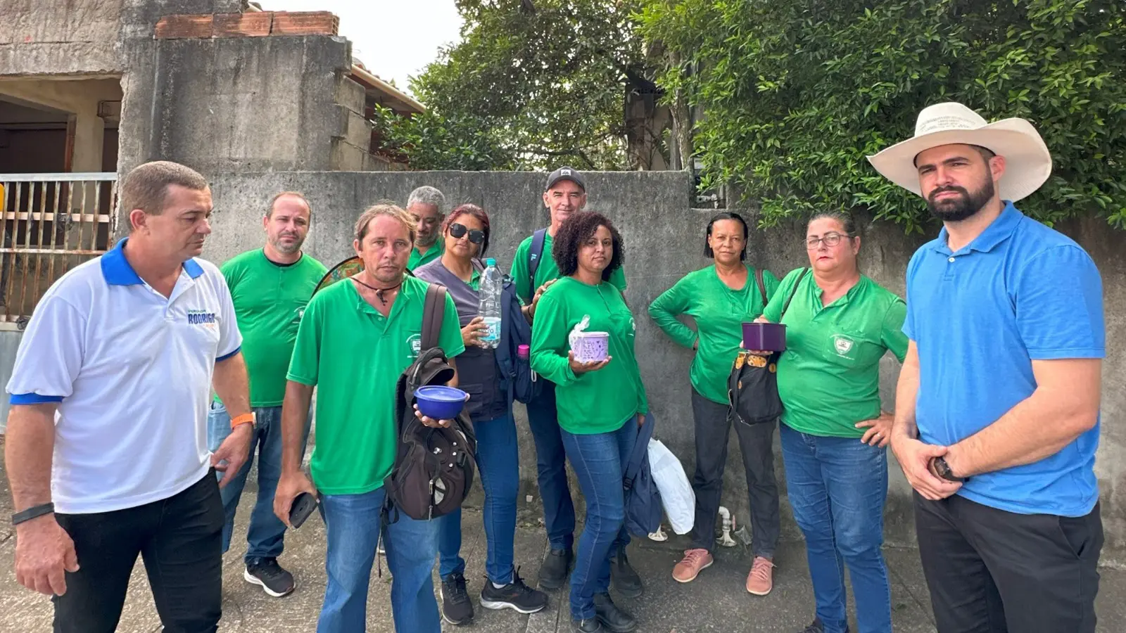 Eles relatam a falta de Equipamentos de Proteção Individual (EPI) e a ausência de um ponto de apoio adequado, que deveria oferecer abrigo contra a chuva, local para alimentação e banheiros.
