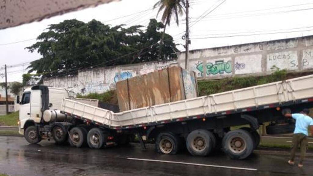 Fato curioso também na manhã de sexta-feira (12), por volta das 6:30h, a carroceria de uma carreta quebrou ao meio, o veículo transportava um bloco de granito, aconteceu na BR-101, próximo da entrada do bairro Taquara I. Corriqueiro esse tipo de bloco partir ao meio as carrocerias das carretas.