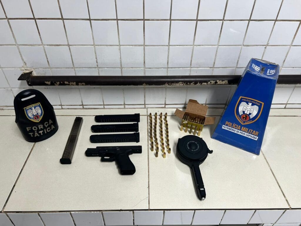 Diante da tentativa de fuga, os militares rapidamente cercaram a área e, seguindo rastros de telhas quebradas, avistaram um indivíduo armado entrando em uma residência.