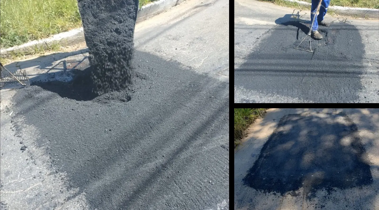 Assim, em fotos que a nossa reportagem recebeu, é possível ver que os buracos receberam material de asfalto, reparando a situação e deixando a rua mais apta à circulação de veículos.
