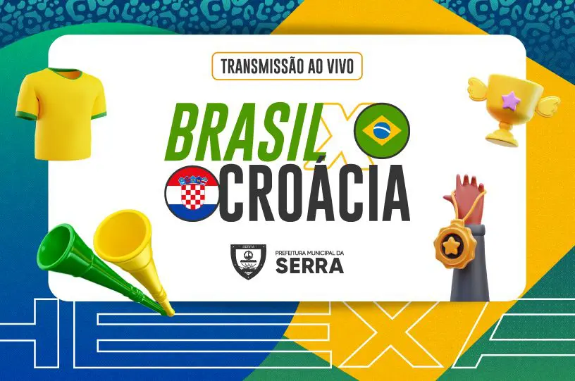 A Seleção Brasileira de Futebol joga pelas quartas de final da Copa do Mundo nesta sexta-feira (07) e o Brasil inteiro entra em campo formando a maior torcida do planeta. Na Serra, a animação é garantida e a concentração para vibrar pelo time tem local marcado: na praça da Igreja Matriz, em Serra Sede.