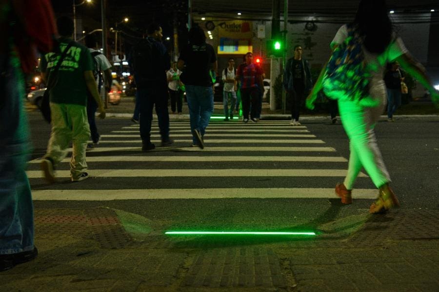 As faixas de pedestres contam com iluminação especial para garantir visibilidade noturna e em condições de baixa luz, proporcionando maior segurança para quem atravessa a via. - Botoeiras Inteligentes: