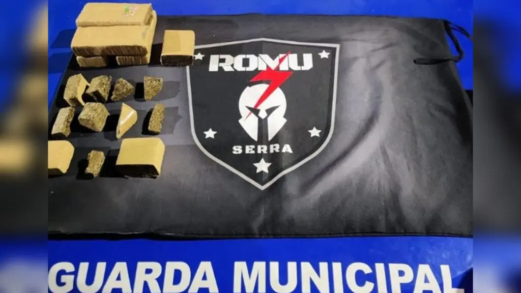 Mais de dez tabletes de substância parecida com maconha foram apreendidos pela Ronda Ostensiva Municipal na noite desta quinta-feira (13). O entorpecente estava no carro de um motorista de aplicativo em Serra Sede, em uma sacola de supermercado.