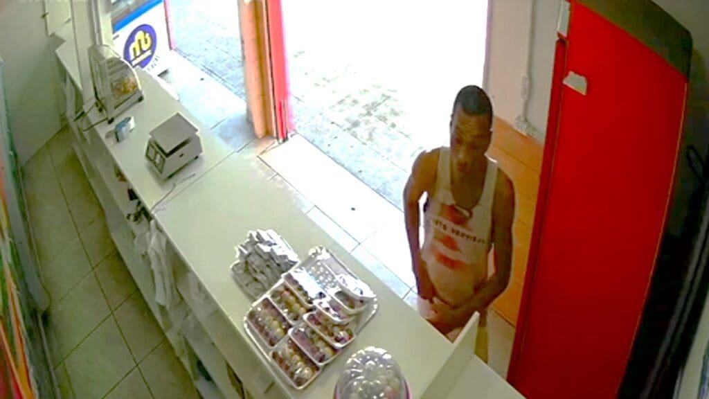 O seguidor compartilhou imagens da câmera de segurança do seu estabelecimento, que também fica localizado no bairro de Novo Horizonte. No dia 1 de setembro, por volta de 12h, o criminoso apareceu no local e abordou uma funcionária, fingindo estar armado. Porém, dessa vez o marginal nem sequer escondeu a mão.