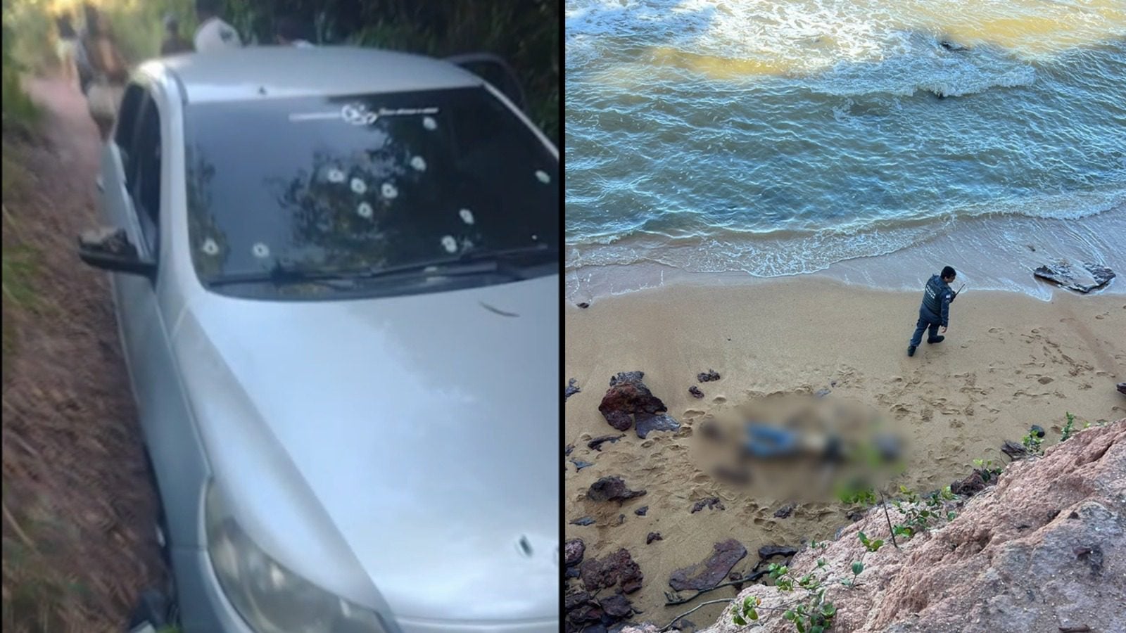 O Serra Noticiário teve acesso a um vídeo gravado logo após o tiroteio. As imagens mostram um carro modelo Gol Prata todo perfurado por disparos, parado próximo ao barranco, perto do ponto onde o corpo do adolescente foi encontrado na beira da praia.