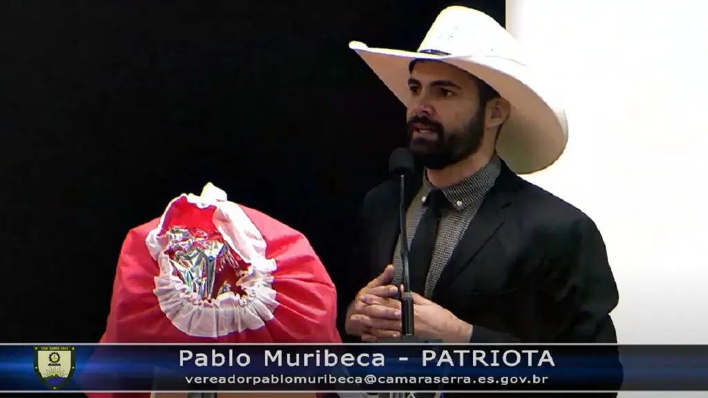 Durante sessão ordinária na câmara da Serra, nesta quarta-feira (15), o vereador Pablo Muribeca (Patriota), distribuiu presentes simbólicos, que o prefeito da Serra teria entregue aos serranos ao longo do ano de 2021.