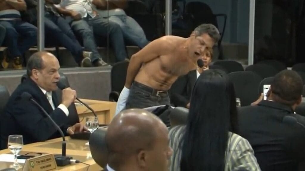 Em uma atípica quarta-feira (17), na Câmara da Serra, o vereador Aldair Xavier (PTB) protagonizou um protesto inusitado. Em resposta a mais uma tentativa de cancelar a eleição da mesa diretora para o biênio 2015/2016, Xavier e outros vereadores decidiram se despir de suas camisas em plenário. O protesto, que foi coberto pelo Serra Noticiário, marcou um dia de tensões na Câmara.