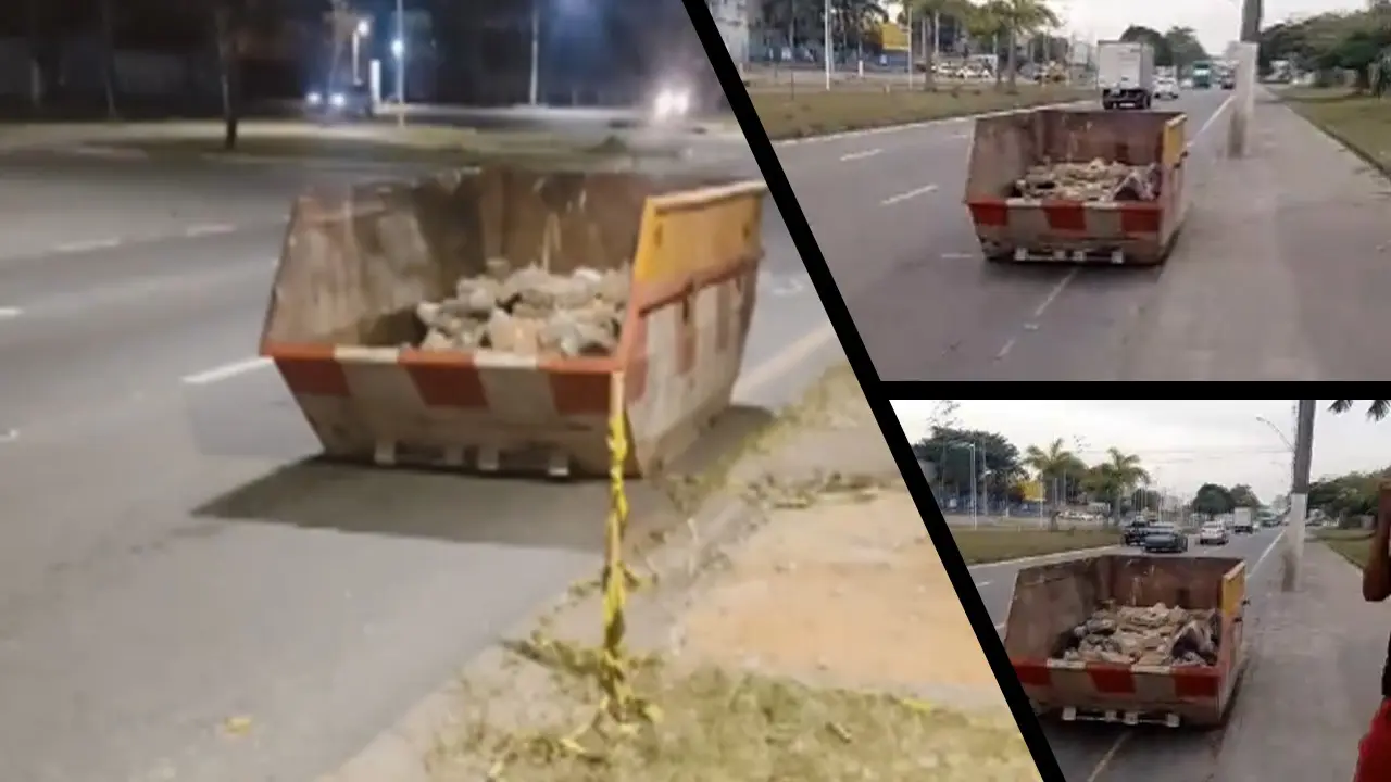 Neste domingo e segunda-feira (20), uma situação preocupante foi registrada na Av. Talma Rodrigues Ribeiro, em Civit II, na cidade de Serra. Um profissional estacionou uma caçamba de entulho no meio da via, sem qualquer sinalização, aumentando o risco de acidentes para motoristas e pedestres.
