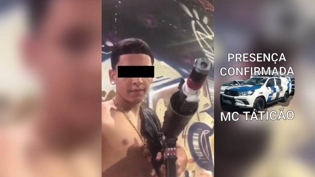 Nas imagens é possível ver um “estudante” ostentando a arma de grosso calibre que em determinado momento aponta o cano da arma em direção à câmera do celular. Em um outro vídeo, é possível ver diversas armas em punho de criminosos.