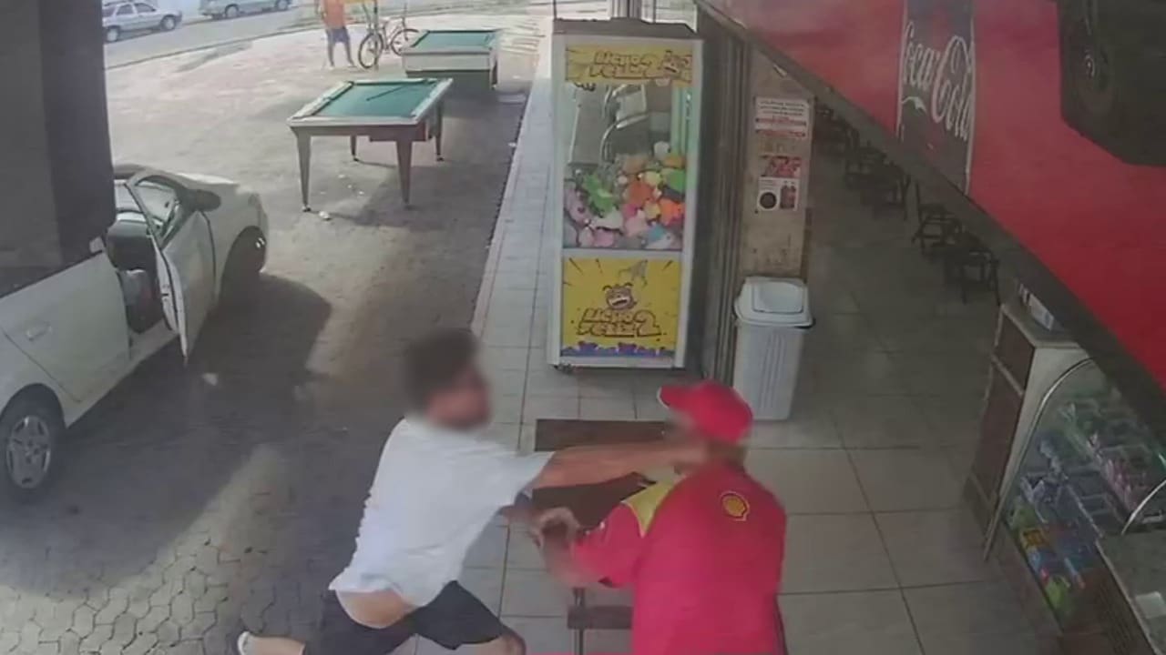 Segundo o frentista, a confusão começou depois que o suspeito saiu da loja de conveniência e passou por ele. Foi nesse momento que os dois iniciaram uma discussão, que foi registrada pelas câmeras de segurança do posto.