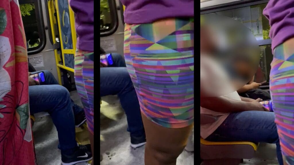 Um leitor do Serra Noticiário estava em um ônibus da linha 858, retornando para casa após um dia de trabalho, quando flagrou um indivíduo sentado na cadeira, com um celular no modo de gravação de vídeo, posicionado em direção às nádegas de uma passageira que estava em pé, próximo ao sujeito.