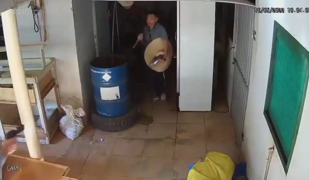 Em dado momento, um dos funcionários e o proprietário correram para o fundo da loja. Quando notaram que o suspeito havia encurralado o funcionário, o dono da loja sacou uma pistola e fez um disparo para o alto, e seguiu o homem. Diante do disparo, o suspeito se conteve, colocou a faca em cima do freezer e se desculpou, saindo da loja.