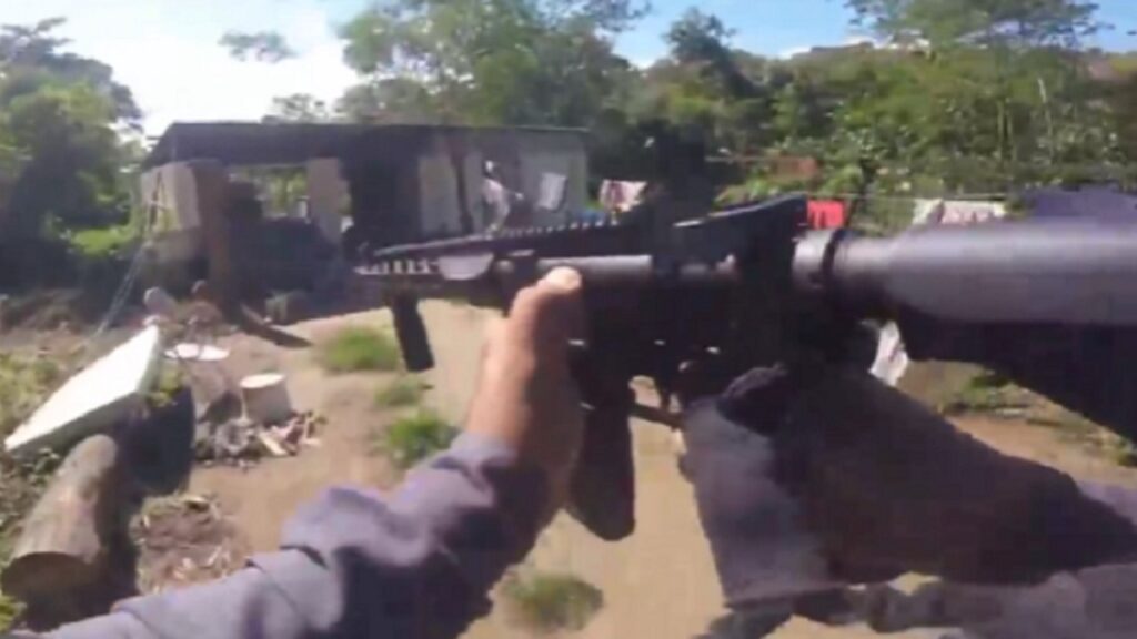 Durante as buscas, os militares conseguiram abordar dois suspeitos com armas e drogas. Porém no momento que a equipe realizava a apreensão, cerca de 8 traficantes posicionados mais à frente do local da prisão, começaram a atirar contra os militares, que prontamente revidaram a injusta e iminente agressão. Conforme aparece no vídeo: