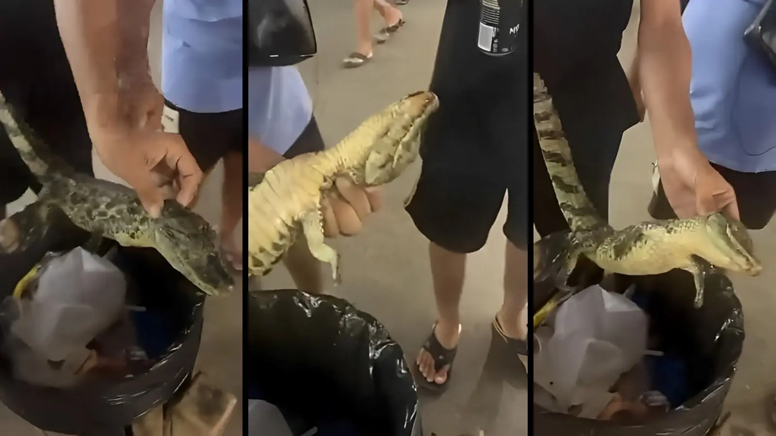 Jacaré aparece morto em lixeira do Terminal Laranjeiras
