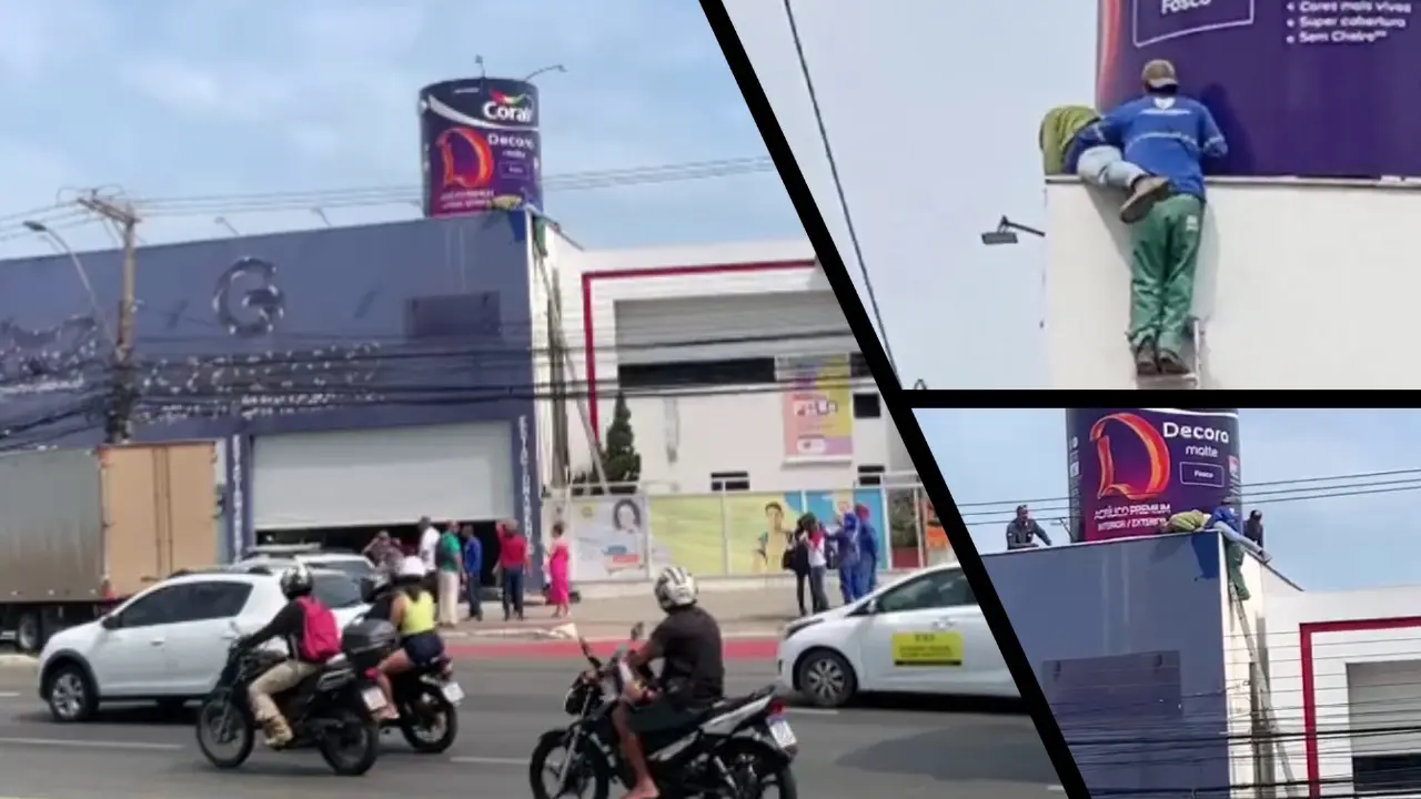 Assim em um ato de solidariedade, um indivíduo que trabalhava nas proximidades prontamente se mobilizou para prestar auxílio. Utilizando uma escada, ele conseguiu alcançar o pintor, garantindo sua segurança até a chegada do Corpo de Bombeiros para efetuar o resgate.